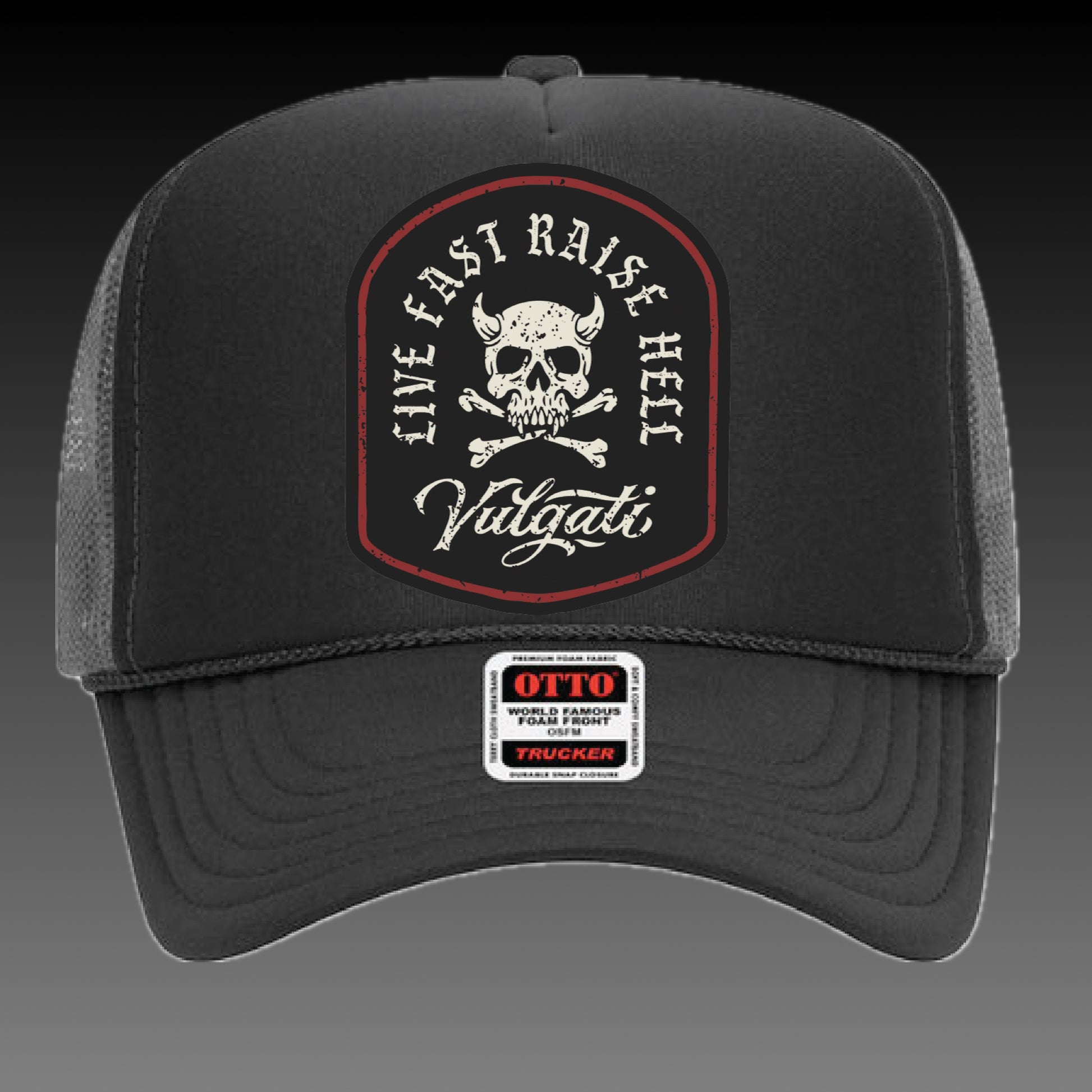 Classic Patch shaped art with horned beast skull logo. Live fast. Raise Hell.