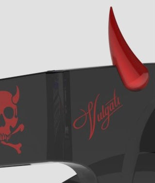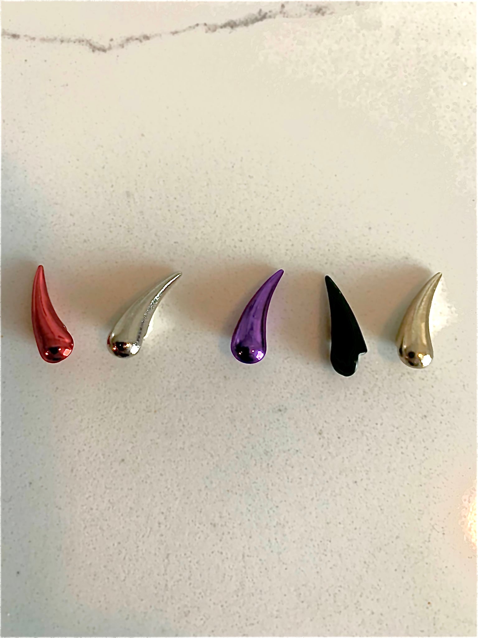 One set of zinc alloy metal Devil Horns and 2 screws in a clear plastic ziplock bag.