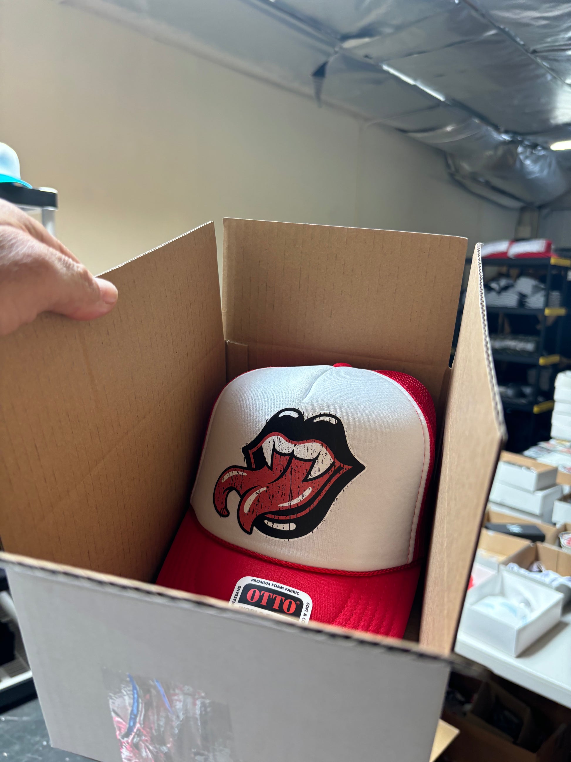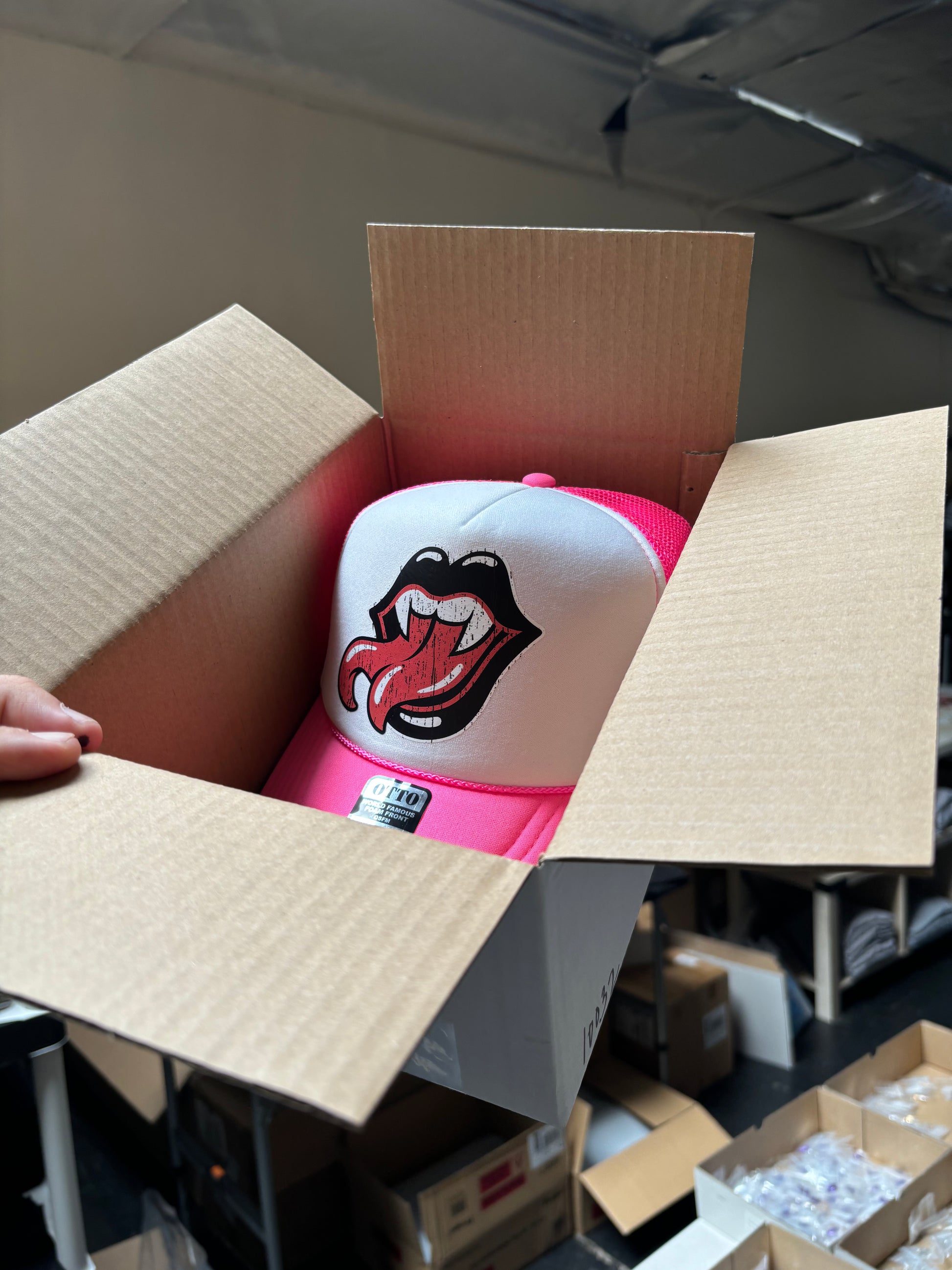 Foam front, mesh back. Plastic adjustable strap. One size fits most.