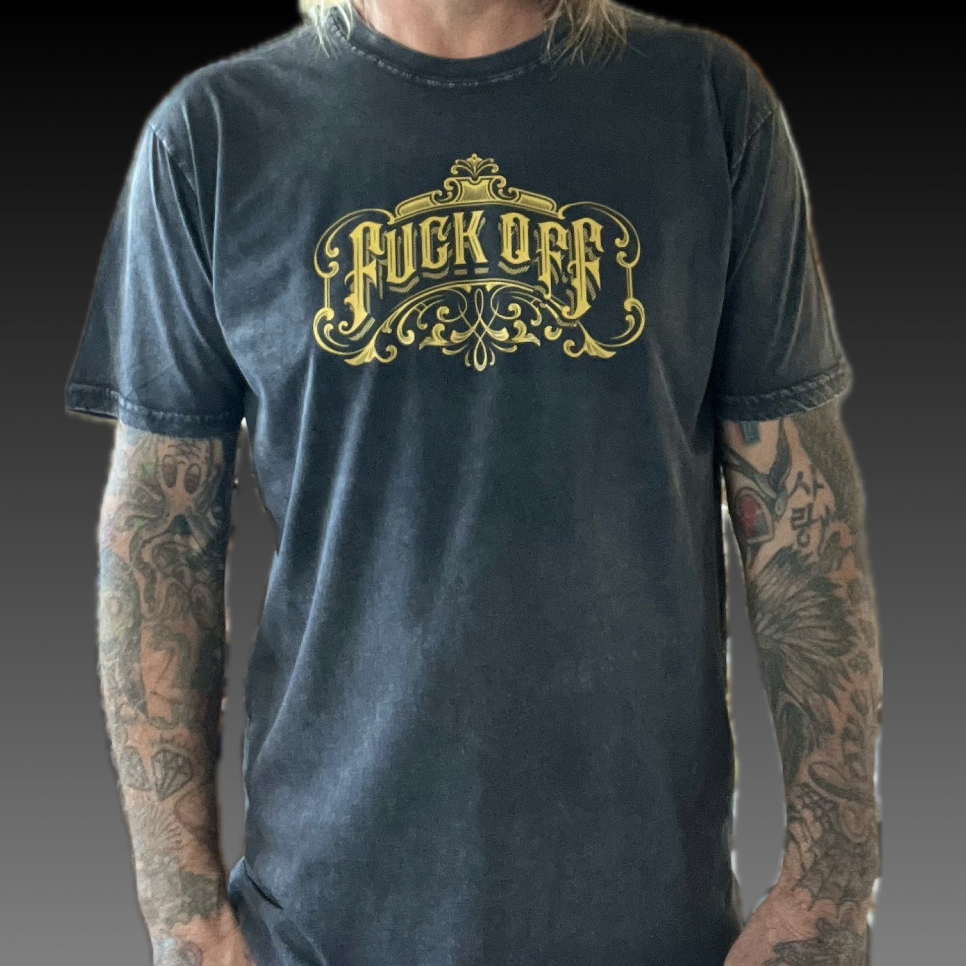 Vulgati Fuck Off heat transfer print at center chest. Stone washed for that used and abused feel or camo for that backwoods feel.