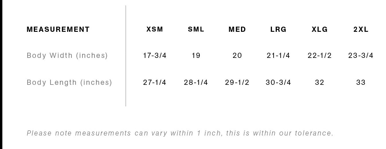 Ribbed crew neck, shoulder to shoulder tape, double needle bottom hem, preshrunk to minimize shrinkage